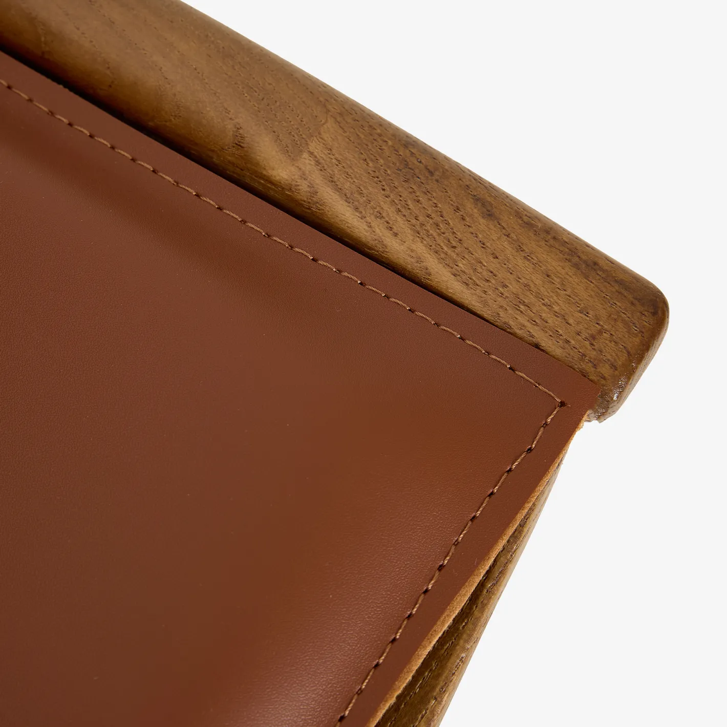 El contraste entre la calidez de la madera de olmo y la elegancia del cuero crea una combinación atemporal.