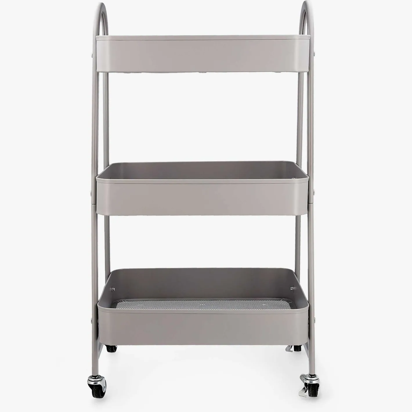 Con tres amplias bandejas metálicas, permite almacenar utensilios, frutas o productos de despensa.