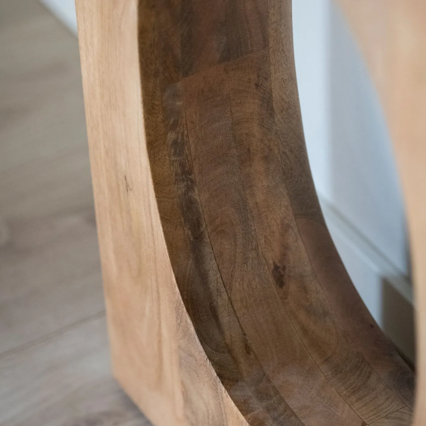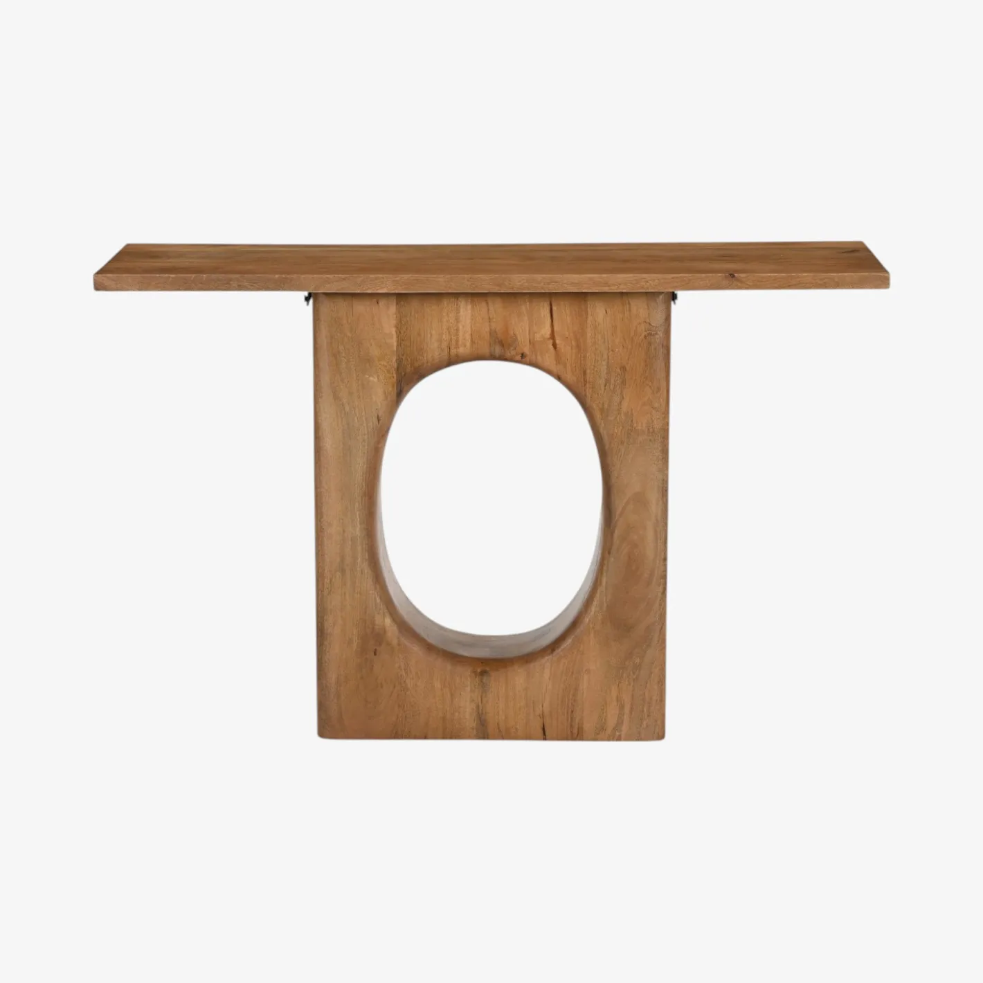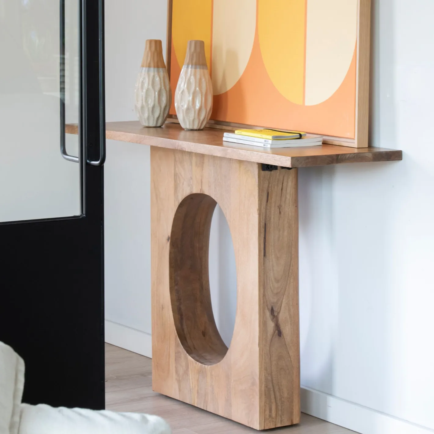 Hecha de madera de mango duradera, esta consola combina belleza y practicidad.