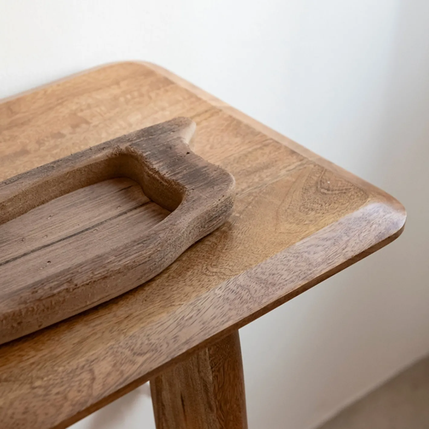 - Estilo natural: acabado en madera de mango con vetas marcadas y cálido tono tostado.