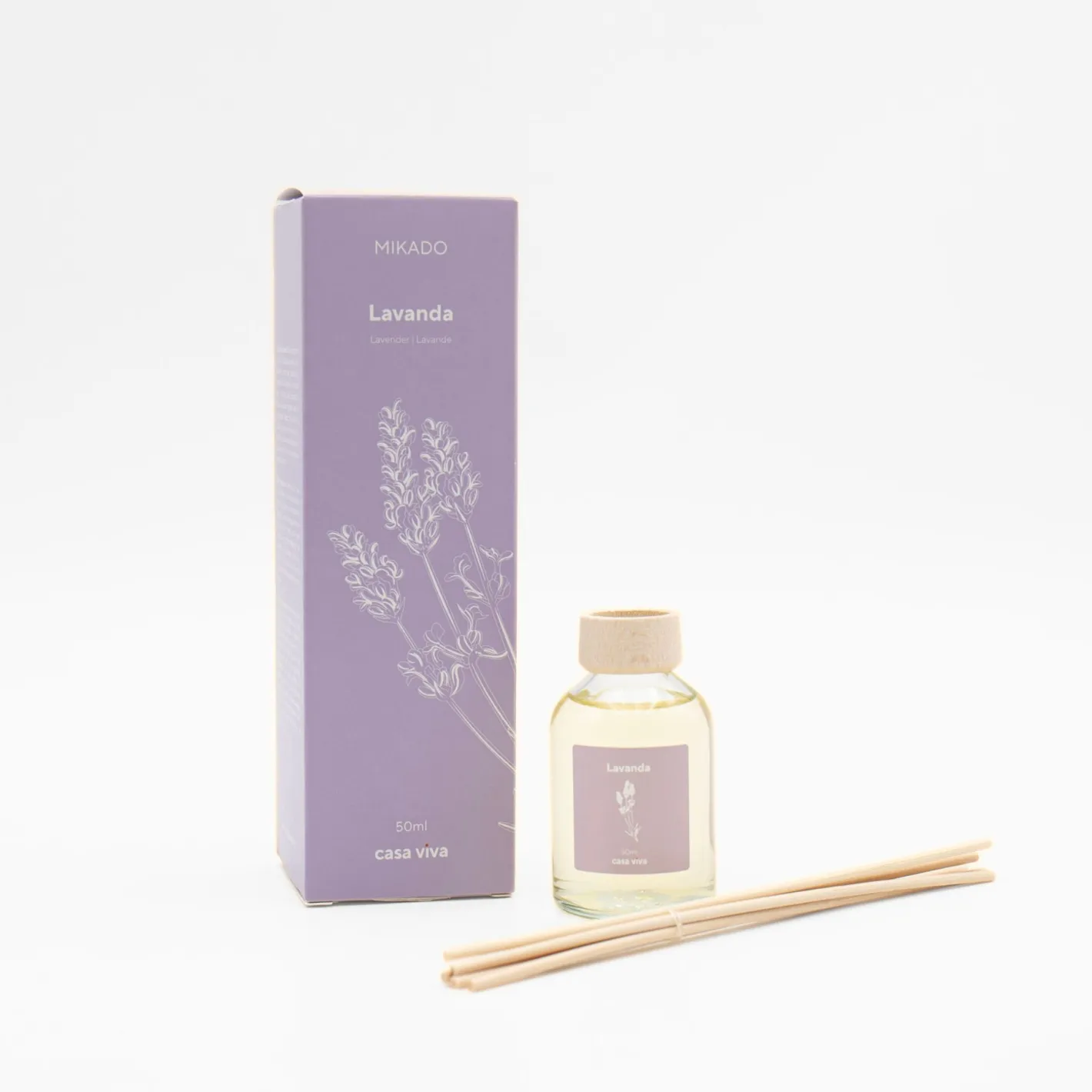 Lleva la relajante fragancia de la lavanda a tu hogar con este elegante difusor en mikado.