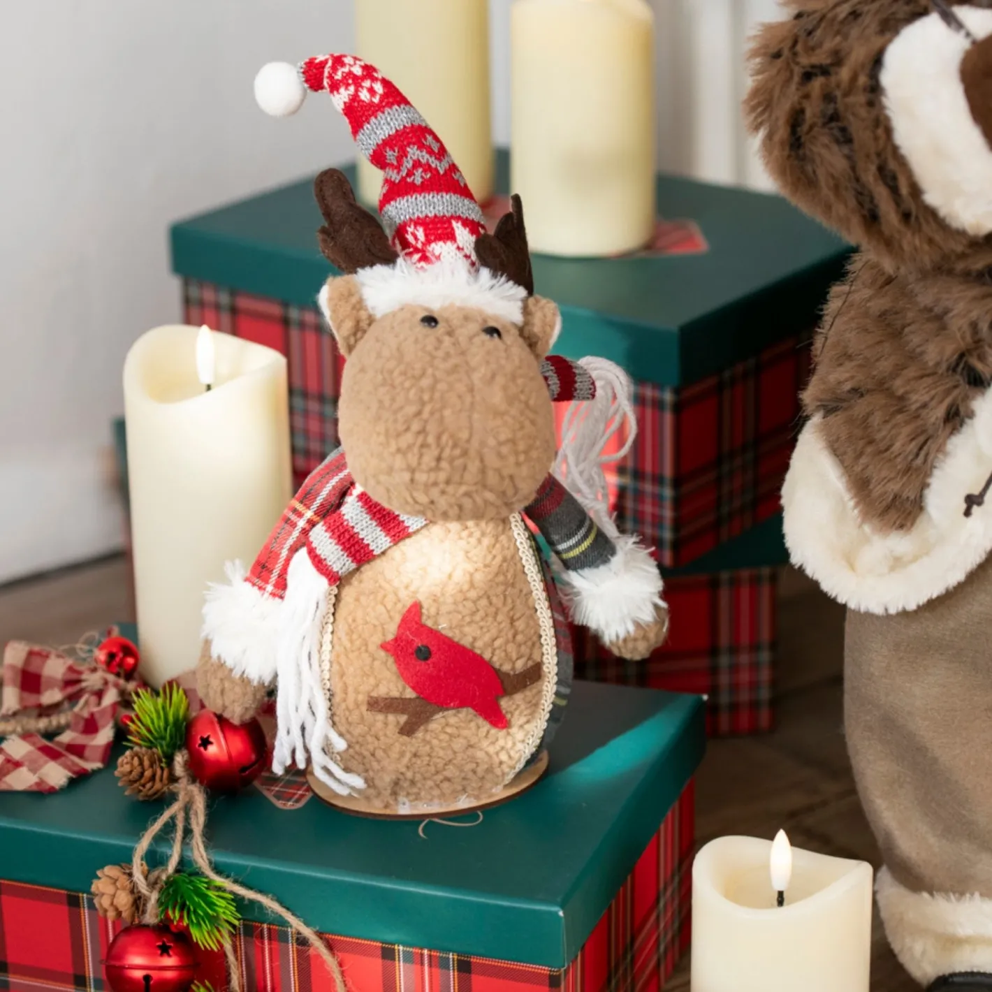Con su suave textura y detalles en colores cálidos, este reno se convertirá en un favorito de las decoraciones navideñas.