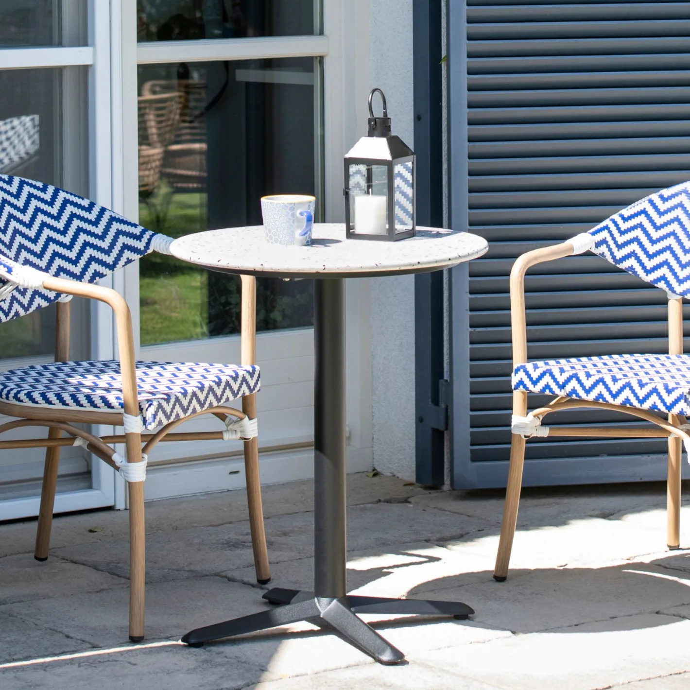 Formato práctico: Tamaño ideal para espacios exteriores pequeños o como mesa auxiliar.