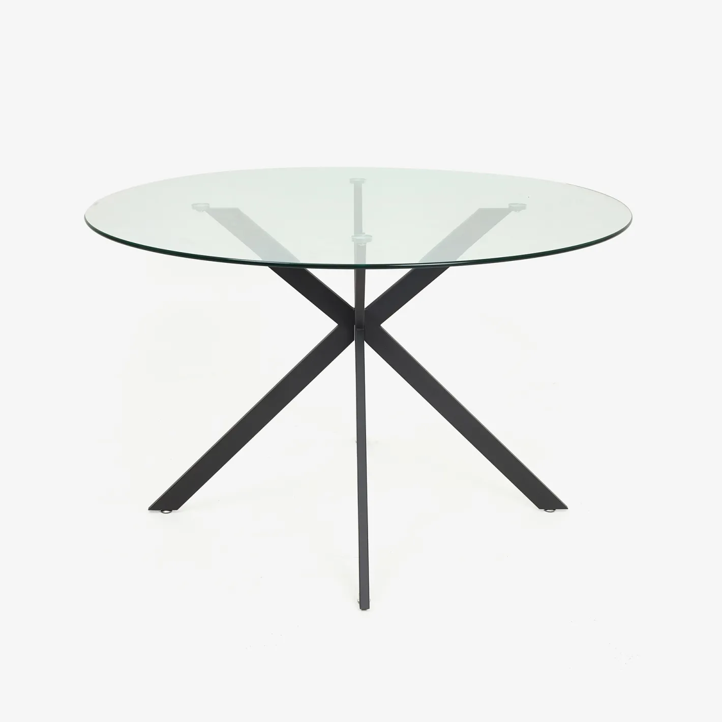 Mesa de comedor de cristal con patas de metal negras Fita Ø120x75cm