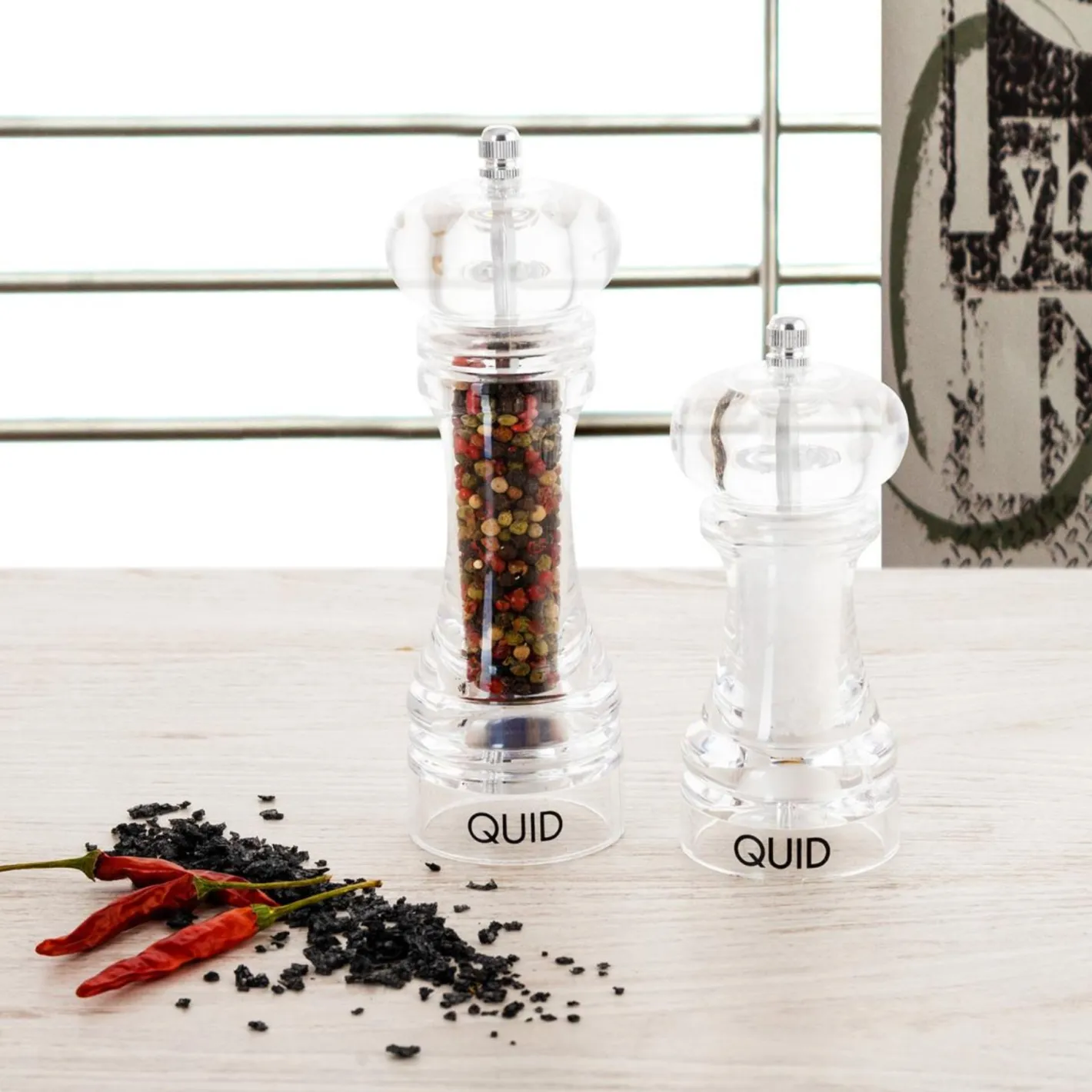 Añade un toque de frescura a tus recetas con este elegante molinillo de pimienta de acrílico.
