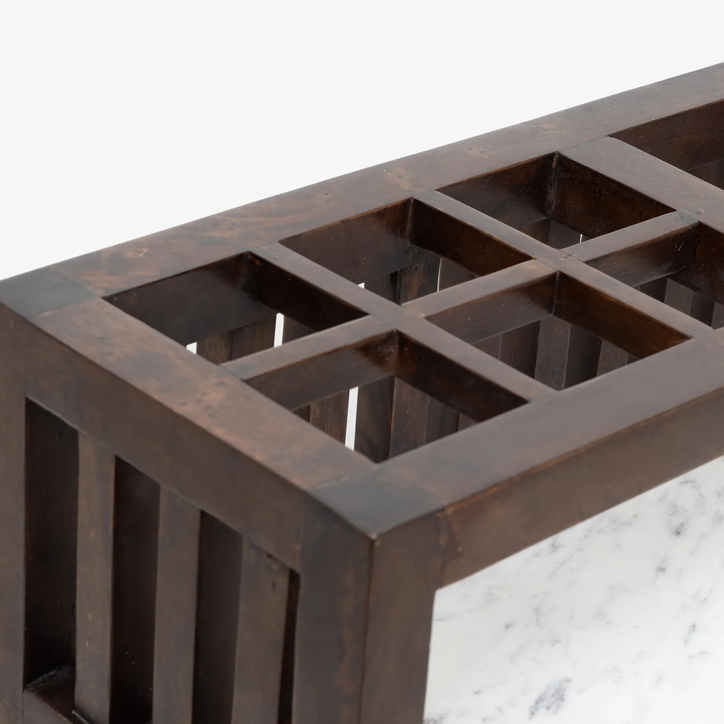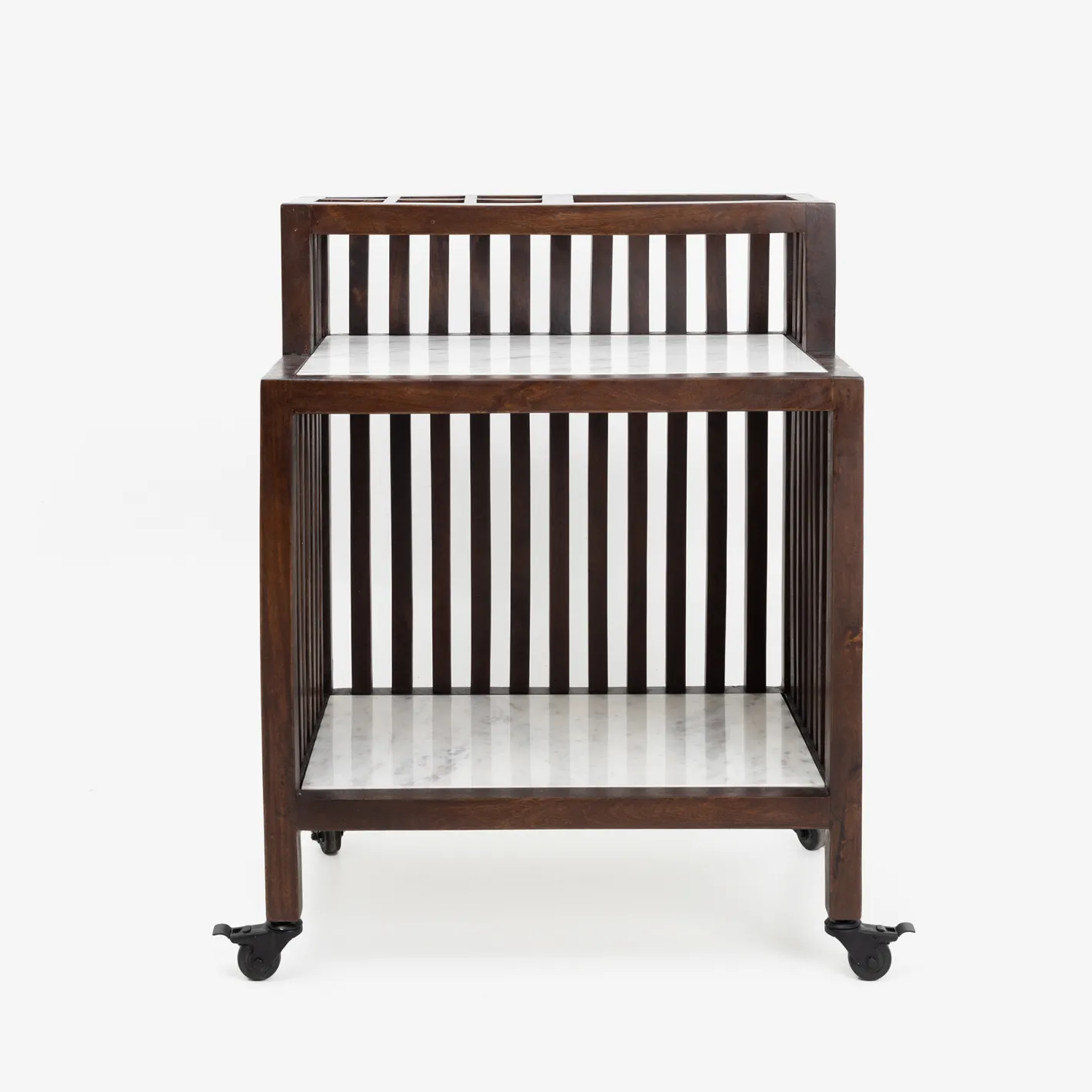 El mueble bar con ruedas de madera de olmo reciclada Pisco es una adición excepcional a tu hogar.