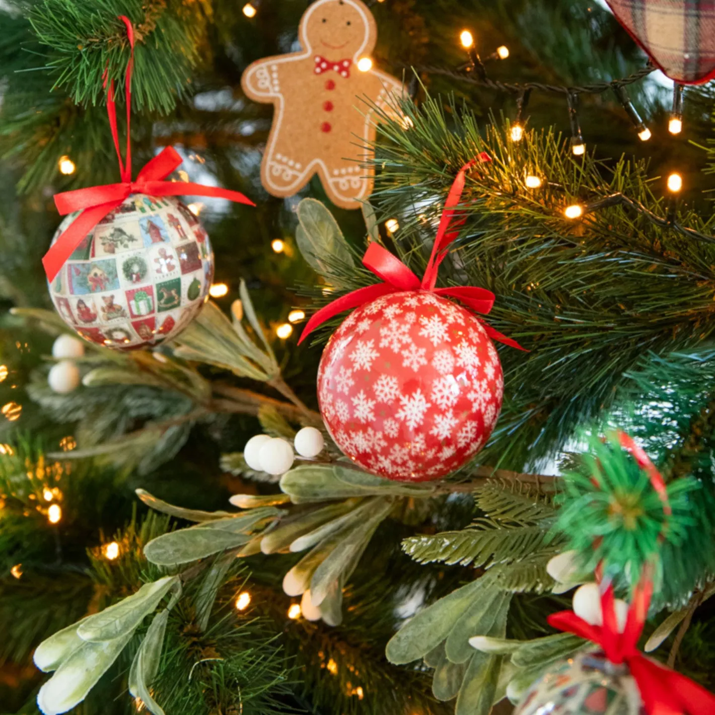 Set 7 bolas decorativas rojas copos de nieve 7,5cm^Casa Viva New