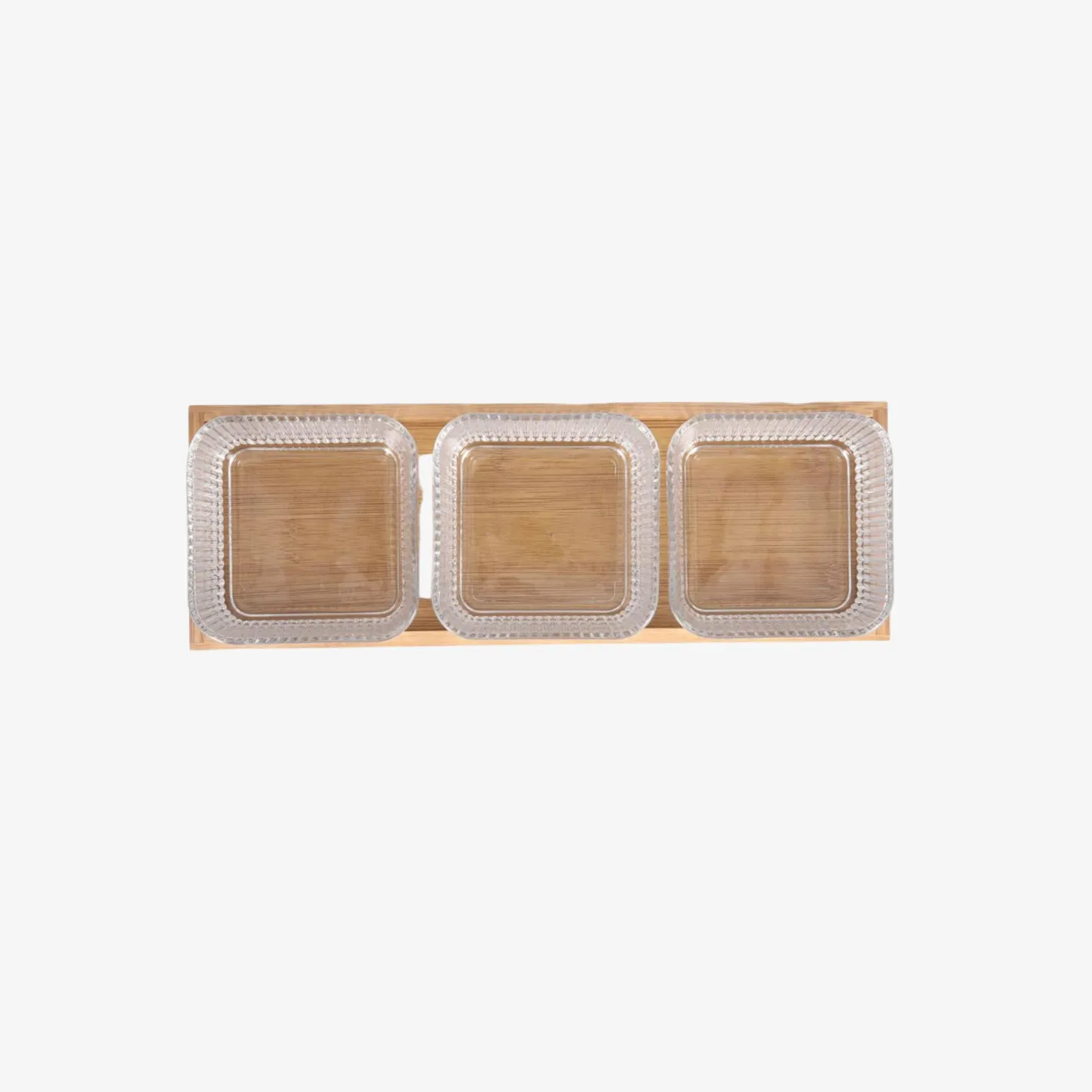 Set de 3 cuencos de vidrio en bandeja de bambú Sena