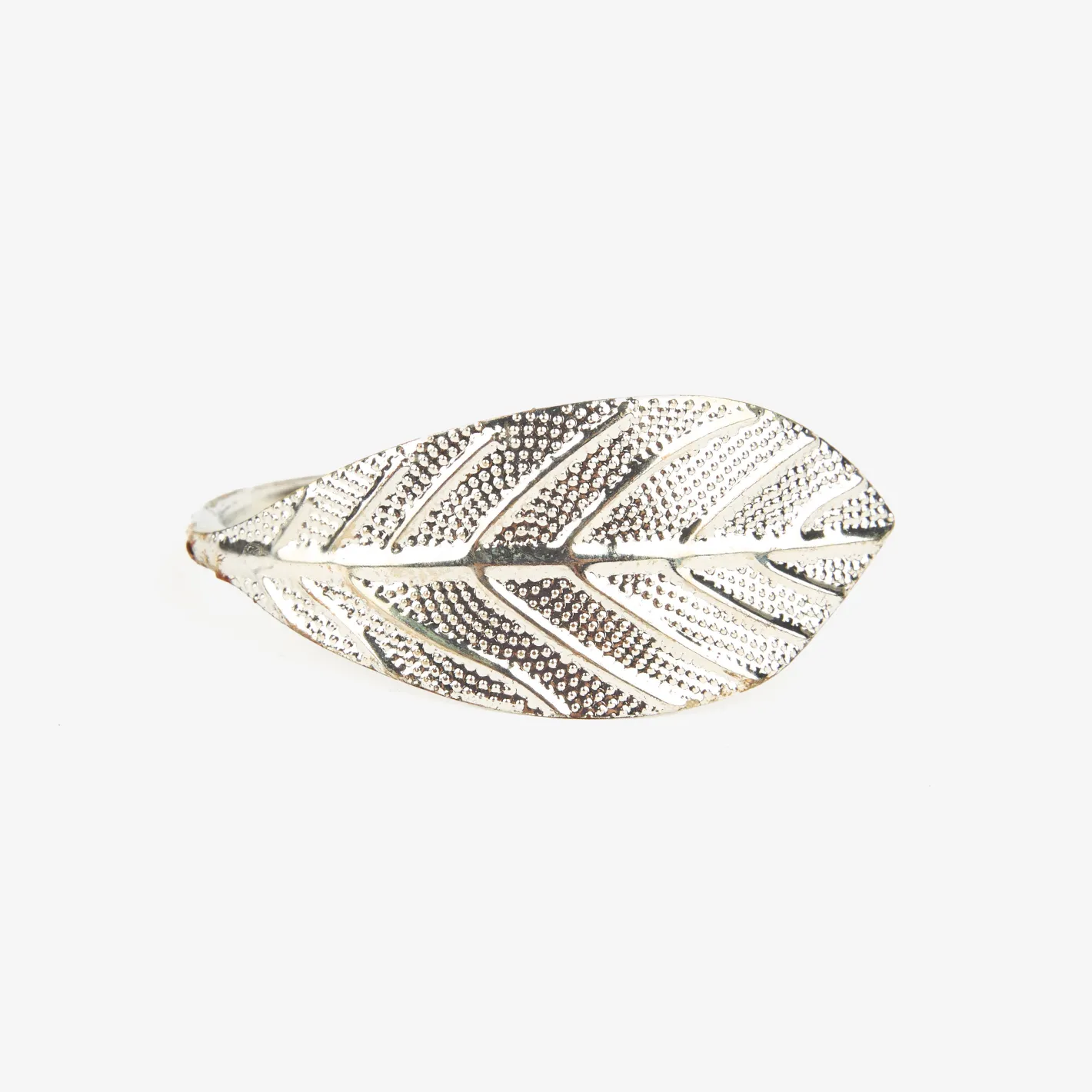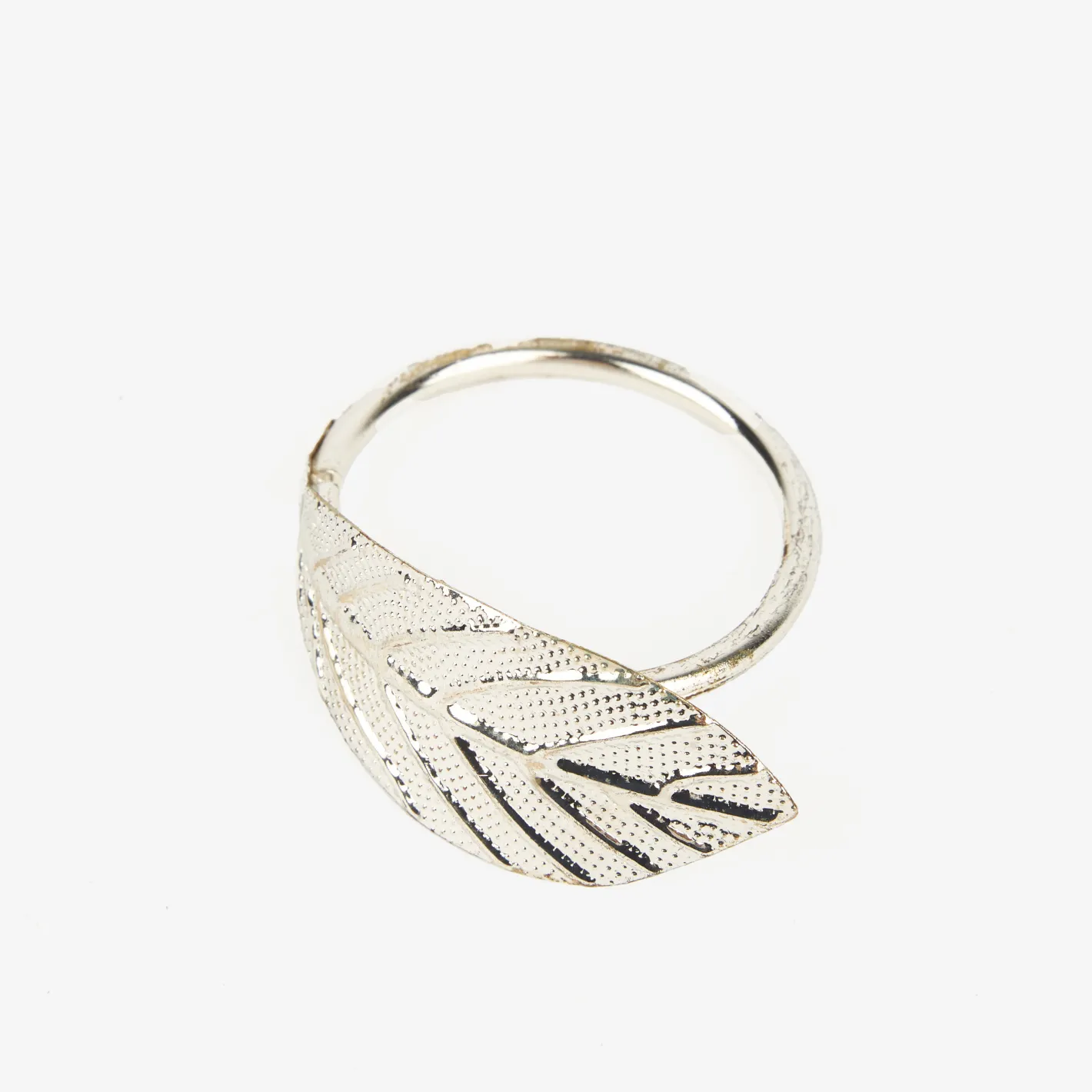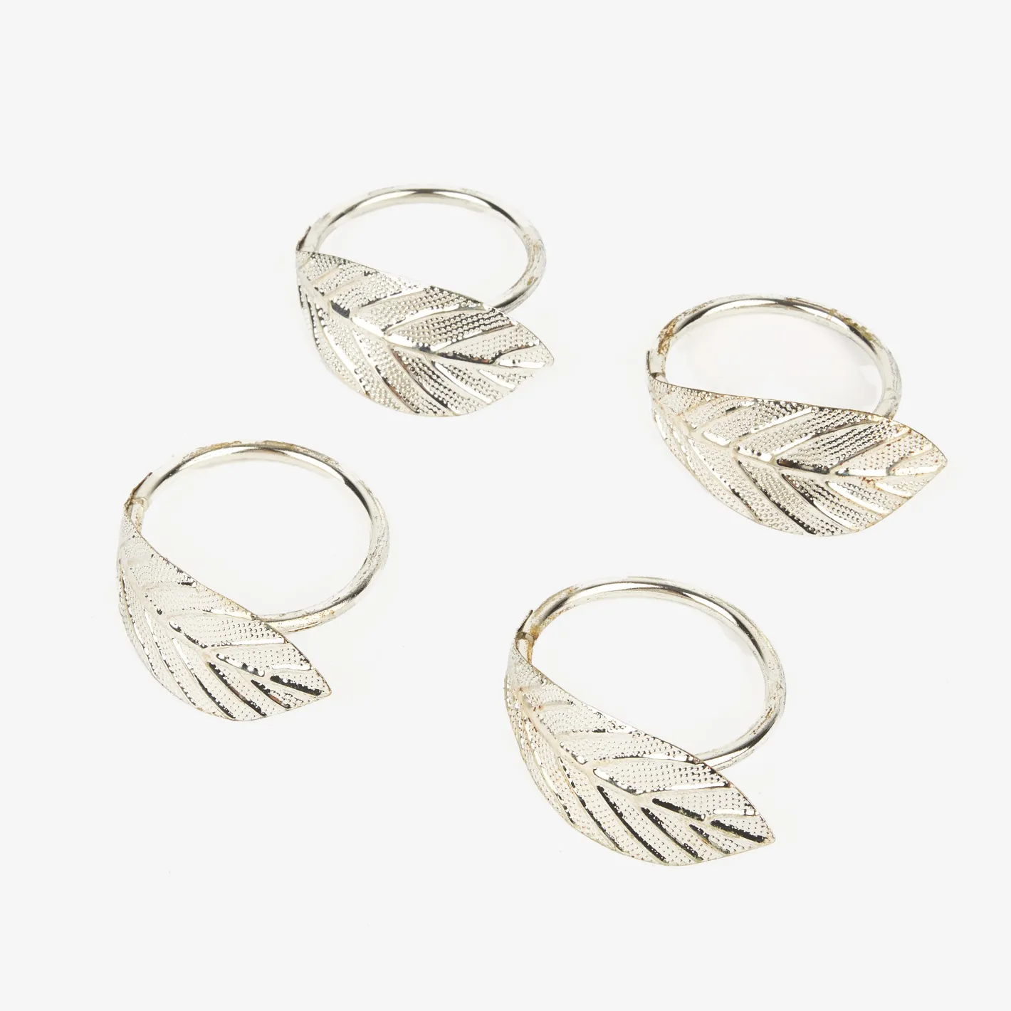 Este elegante set de 4 servilleteros de metal en color plateado con diseño de pluma es el complemento ideal para vestir tu mesa con estilo y sofisticación.