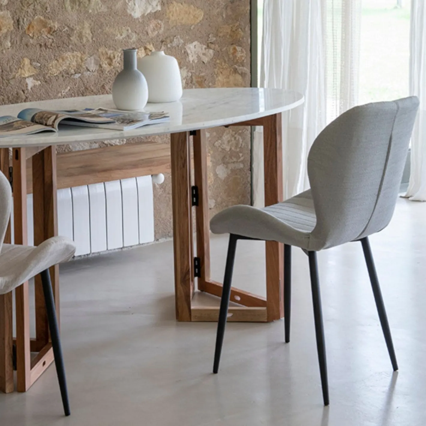 El color gris de esta silla de interior hace que sea fácil de combinar y que se adapte a la perfección a calquier tipo de espacio y estilo.
