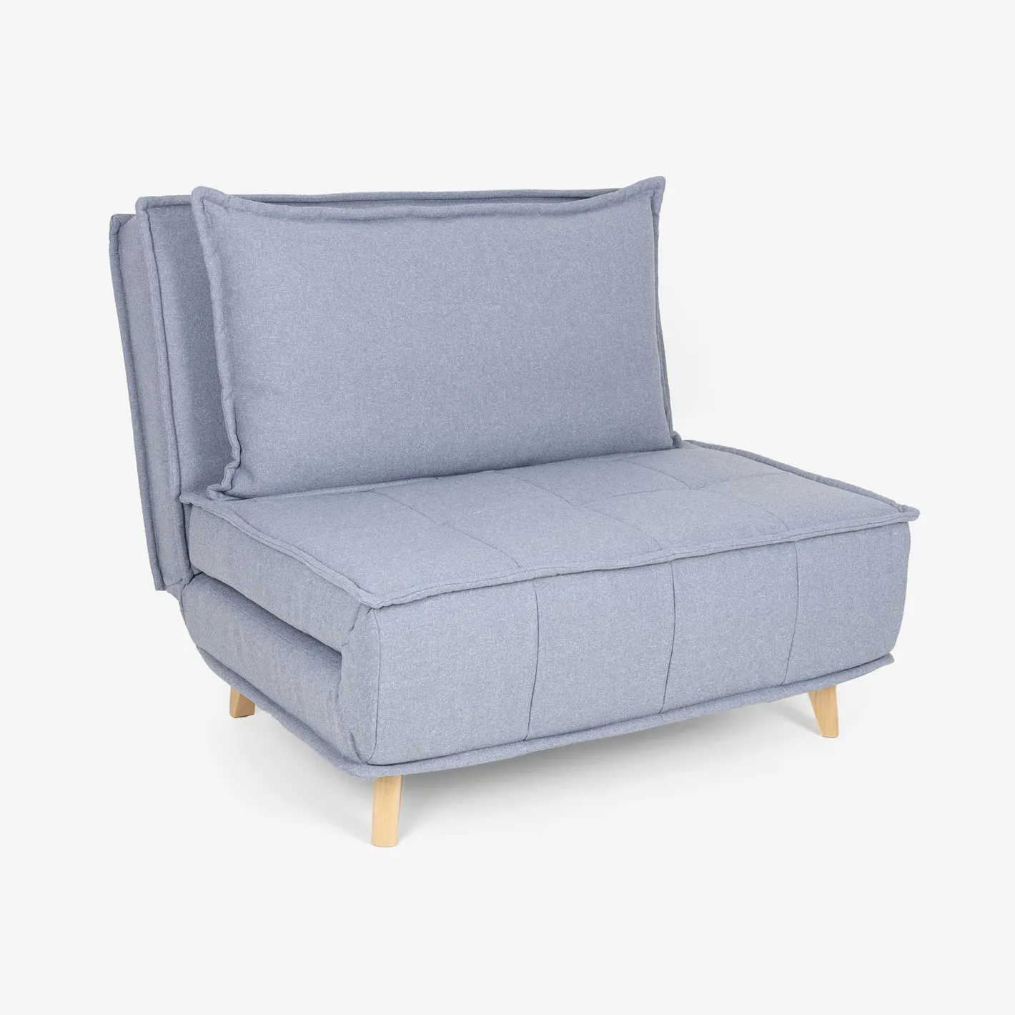 Optimiza tu espacio con el sofá cama individual en color gris claro, una pieza versátil y funcional para tu hogar.