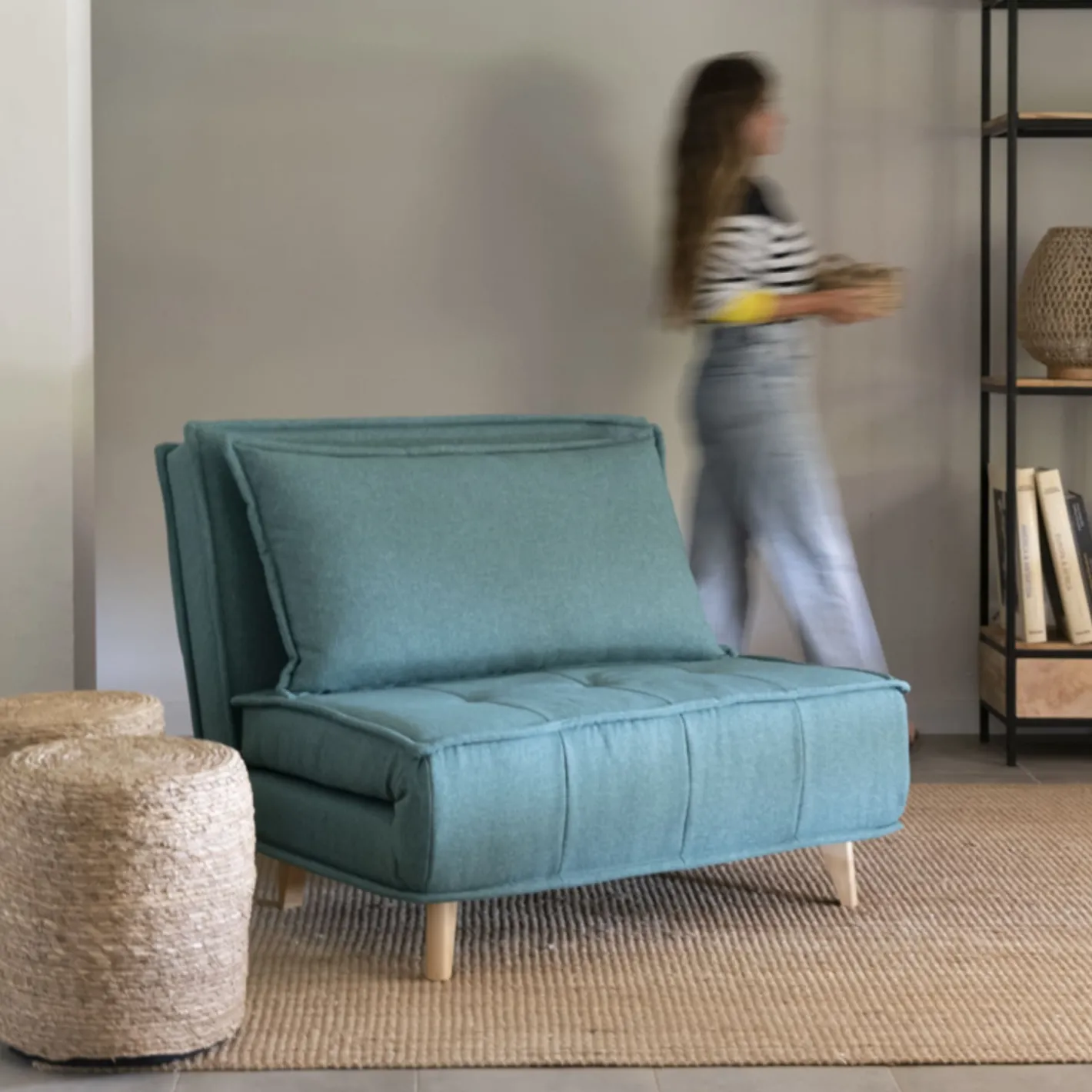 Disfruta de la funcionalidad y el estilo con nuestro sofá cama individual verde, perfecto para cualquier espacio en tu hogar.