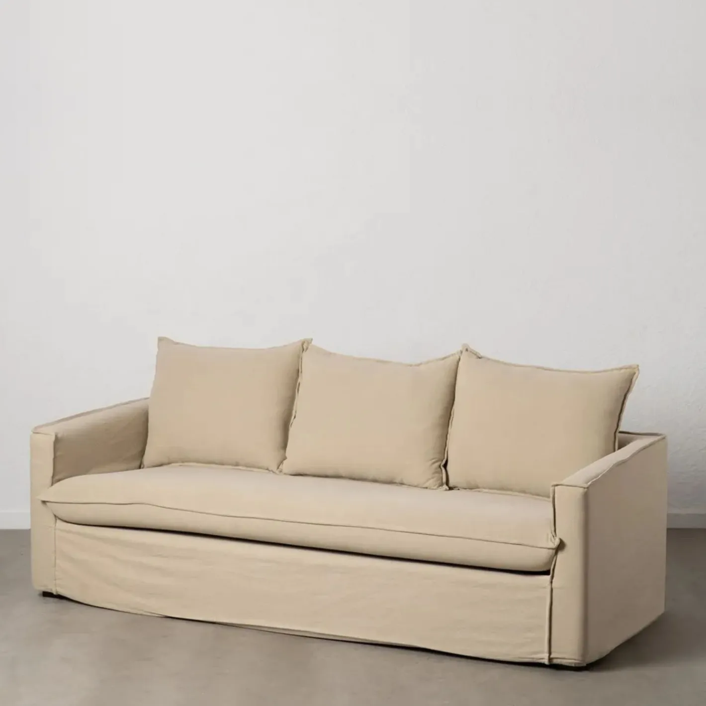 Sofá de 3 plazas de lino y algodón beige Bristol 220x95x90cm