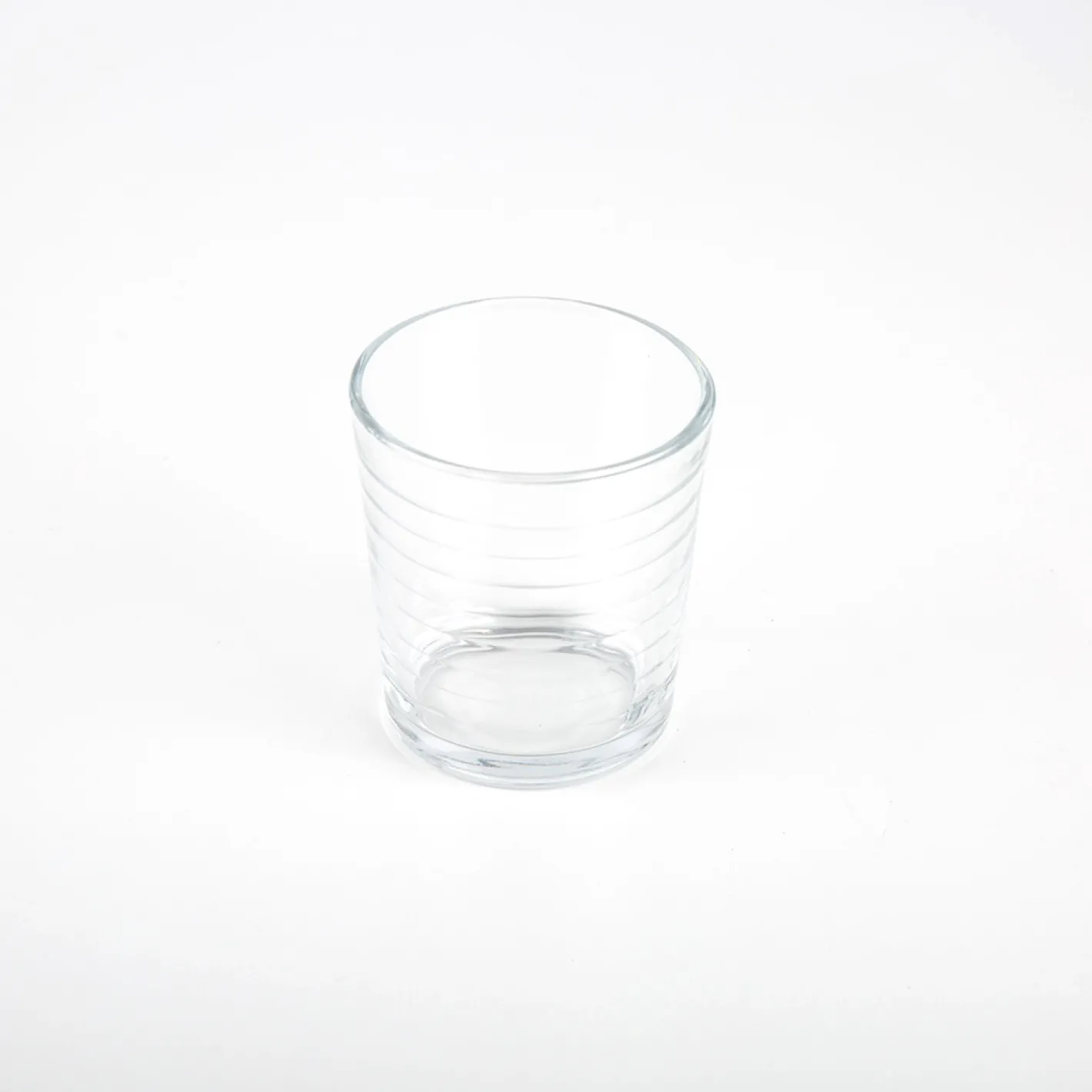 Vaso de cristal Diana, transparente y con pequeños relieves própios de las rayas de su superfície.