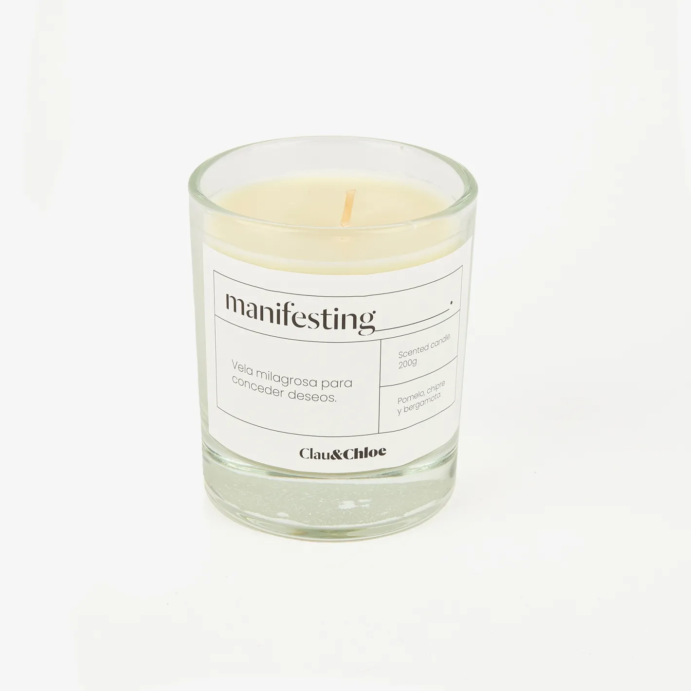 Crea un ambiente inspirador y lleno de energía positiva con la vela aromática Manifesting de Clau&Chloe, ideal para acompañar momentos de meditación o reflexión.