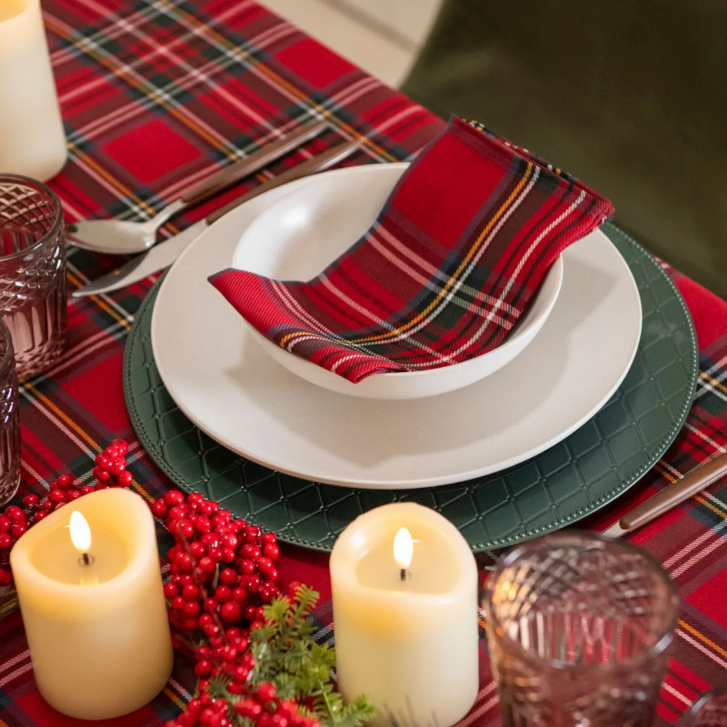Mantel de Navidad blanco bordado Muérdago 150x250cm^Casa Viva Best