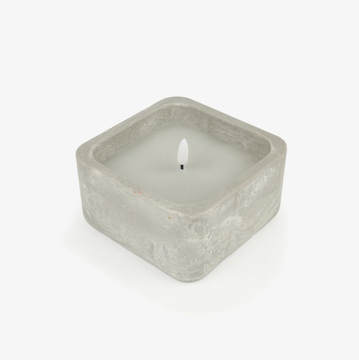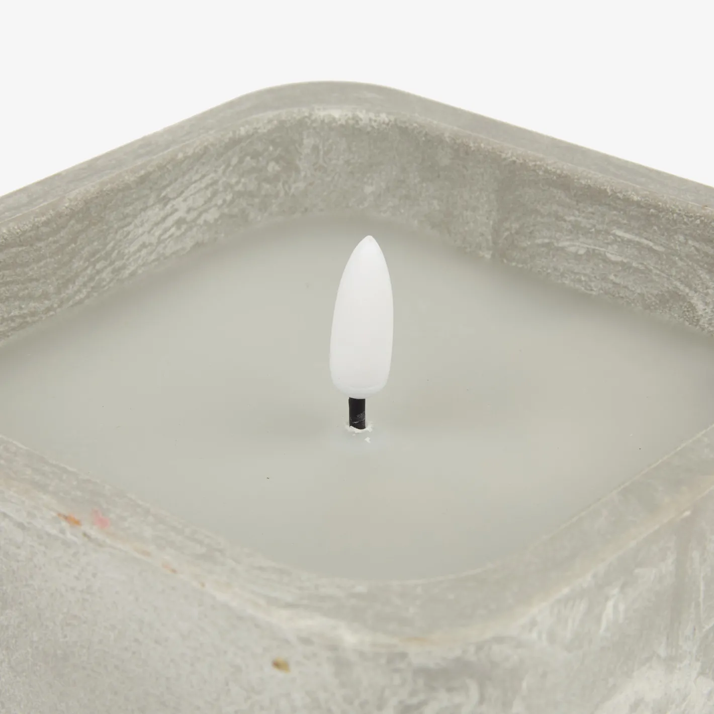 La vela LED en tarro de hormigón combina diseño moderno y minimalista con la seguridad de una luz LED, ideal para crear un ambiente acogedor.