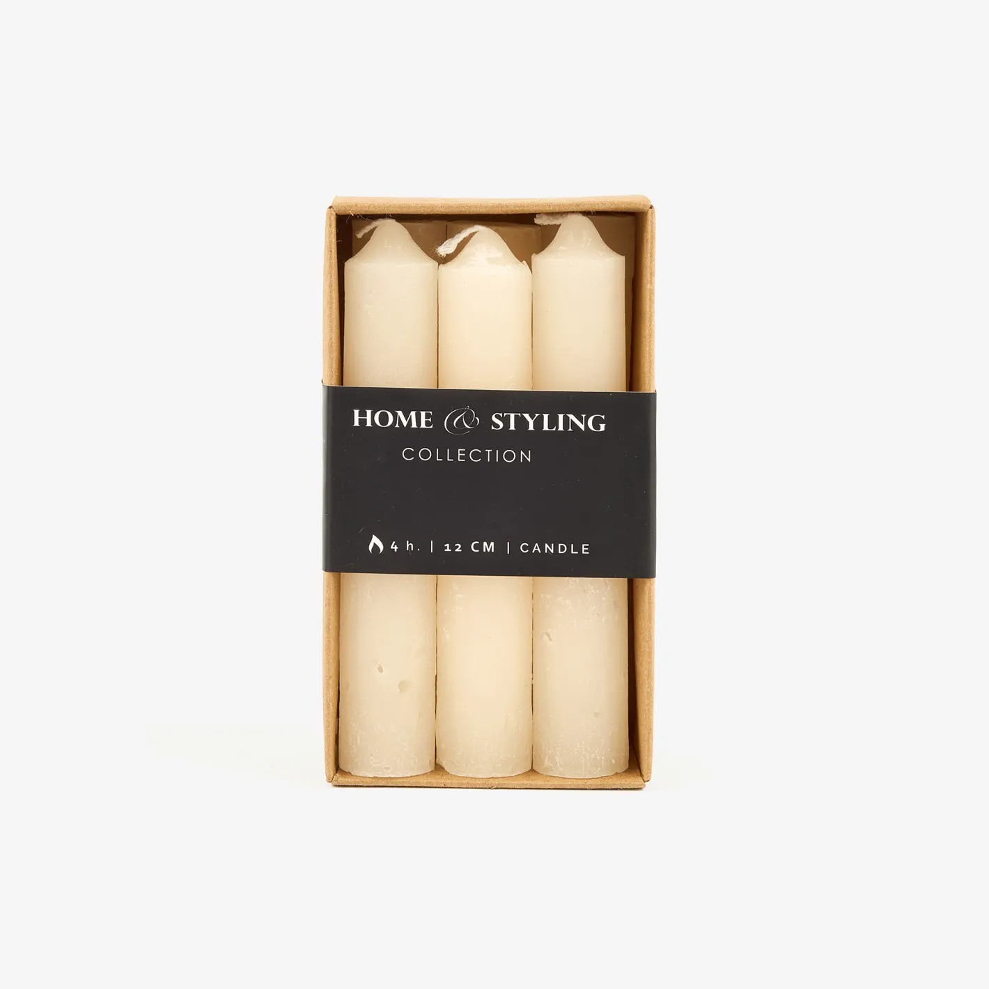 Esta elegante vela en tono marfil es perfecta para usar en candelabros, aportando una luz cálida y suave a cualquier ambiente.