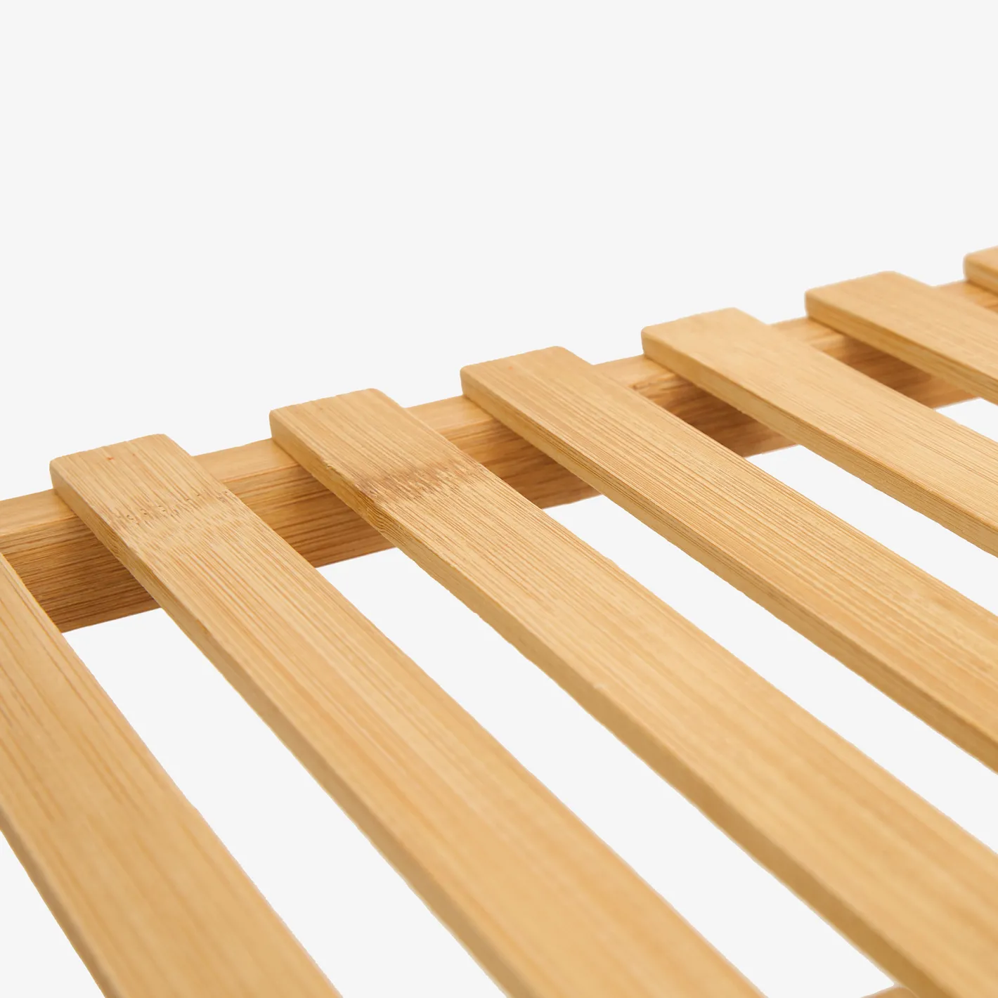 Material: Fabricado en bambú resistente y sostenible, con una estructura metálica robusta que asegura durabilidad y estabilidad.