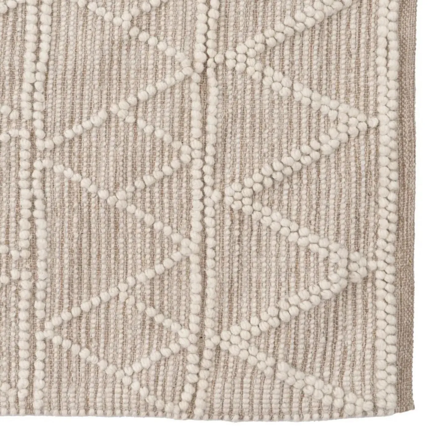Alfombra crema de lana y algodón con relieve Boho 160x230cm