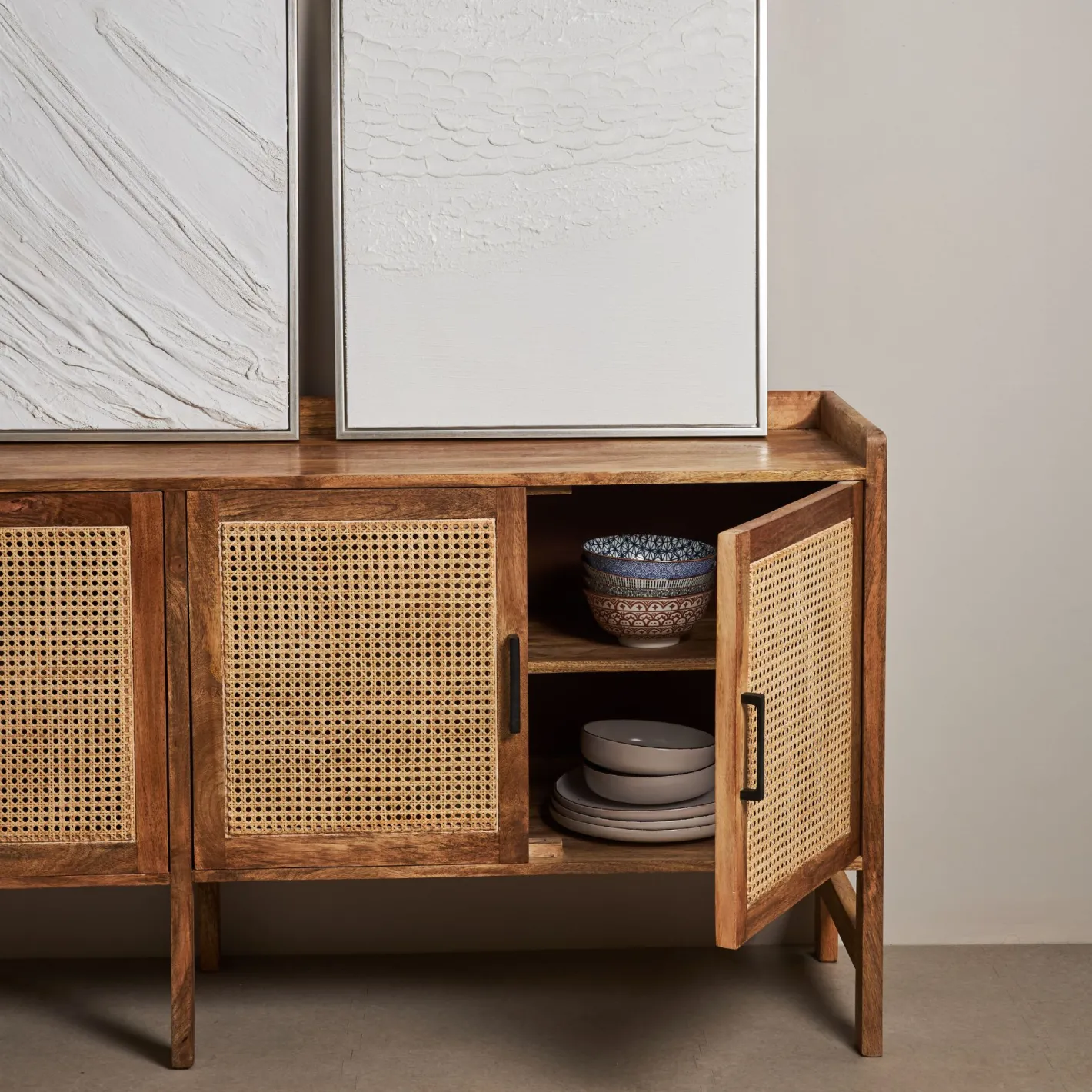 El aparador de la colección Merlin cuenta con un amplio espacio superior para añadir jarrones, espejos, cuadros, y todo tipo de decoración para el recibidor.