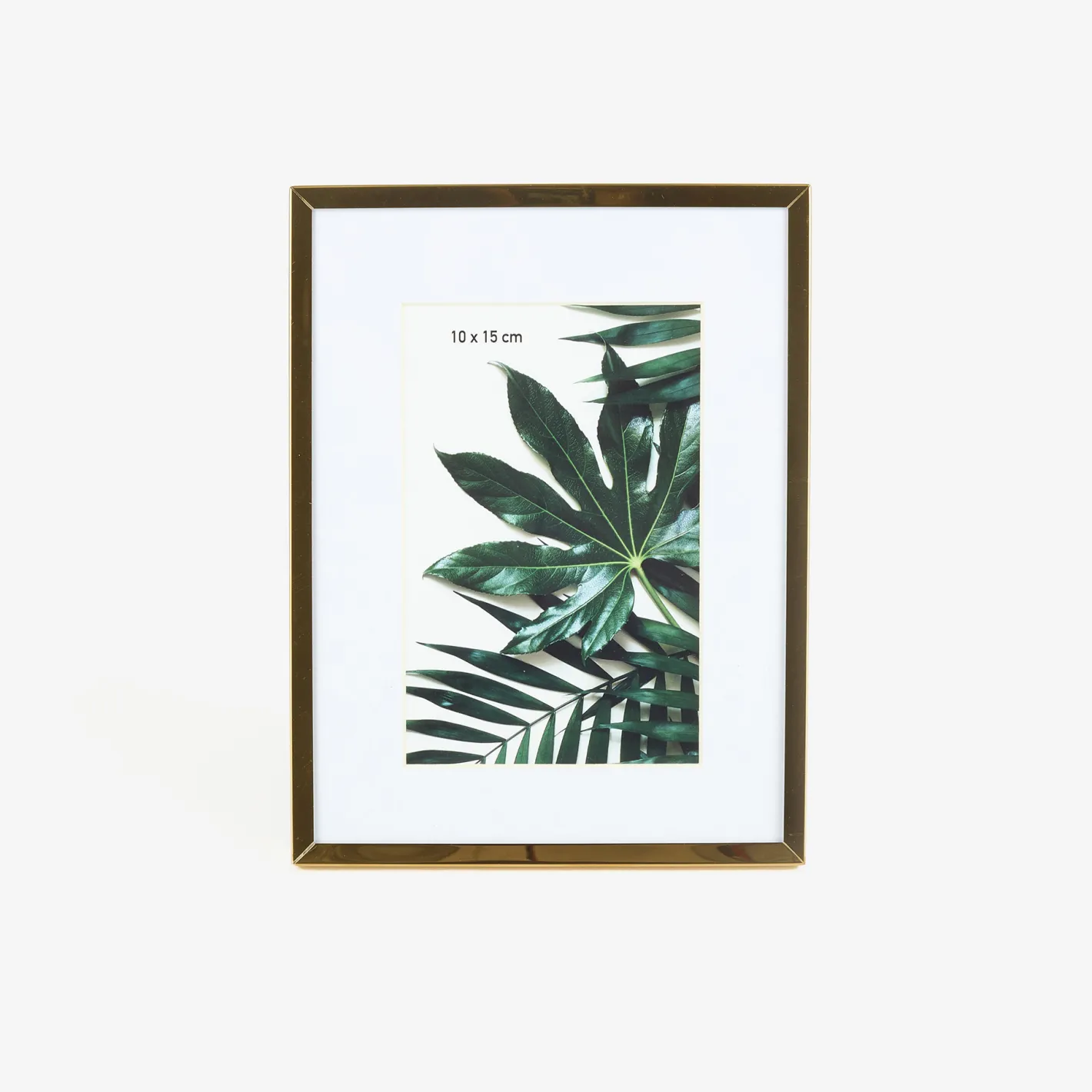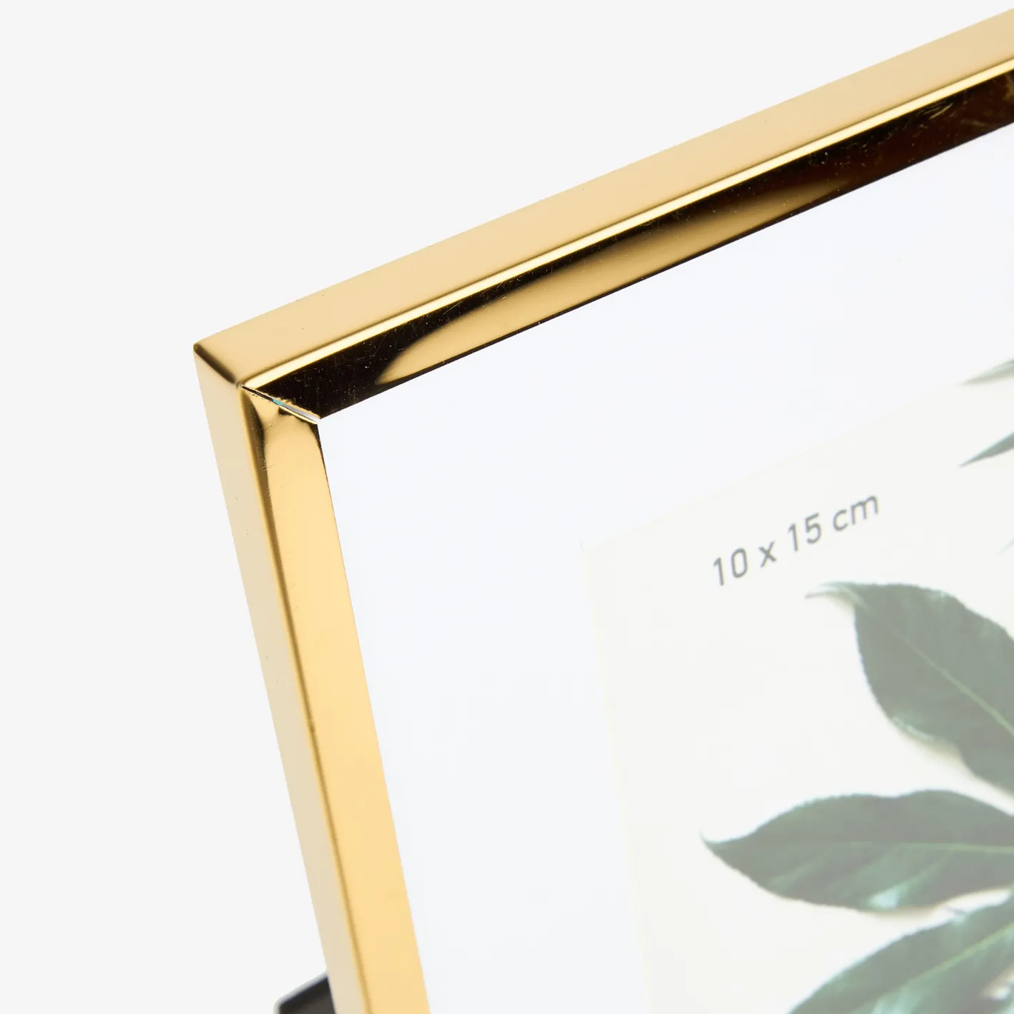 Dale un toque elegante a tus recuerdos con este marco de fotos de metal dorado.