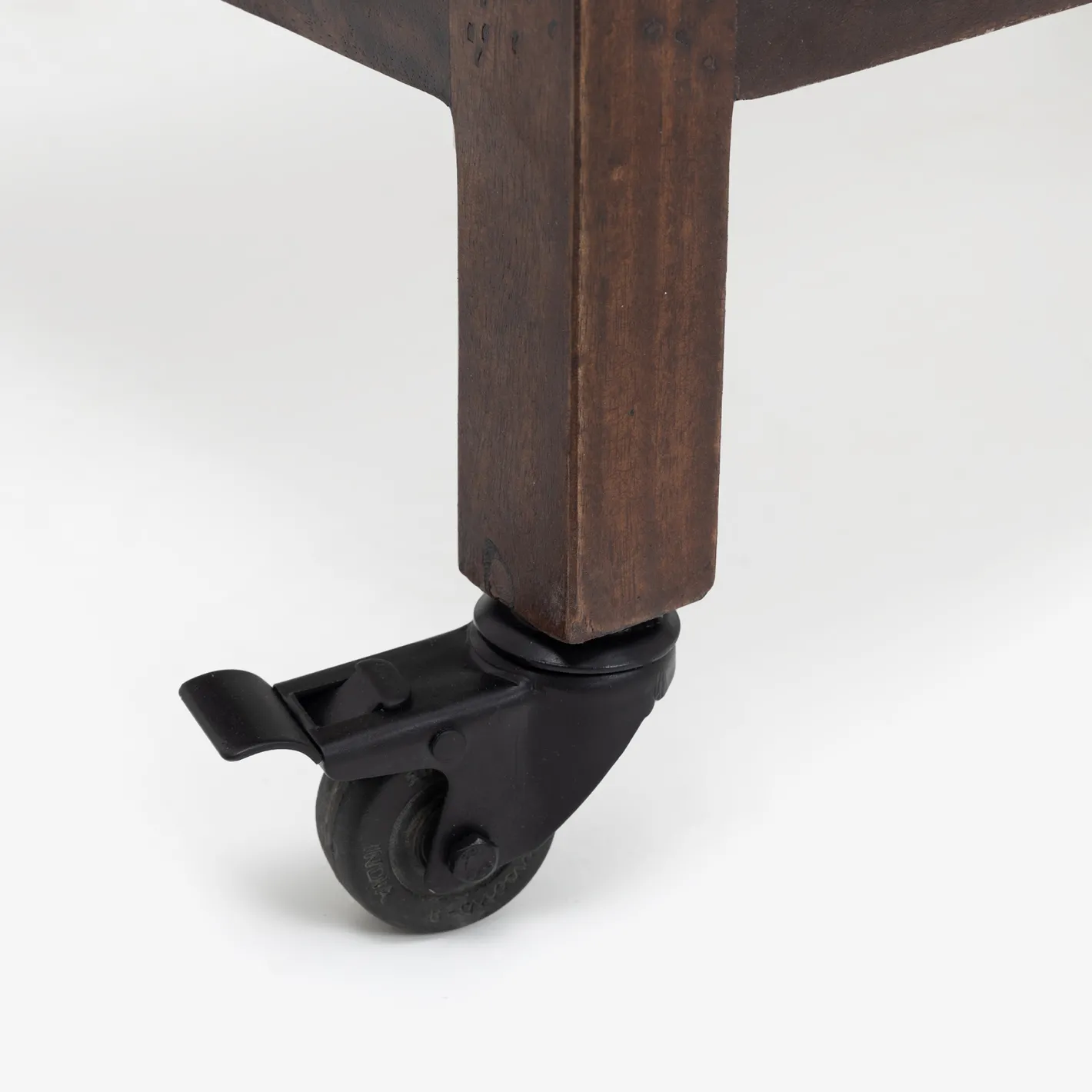 El mueble bar con ruedas de madera de olmo reciclada Pisco es una adición excepcional a tu hogar.