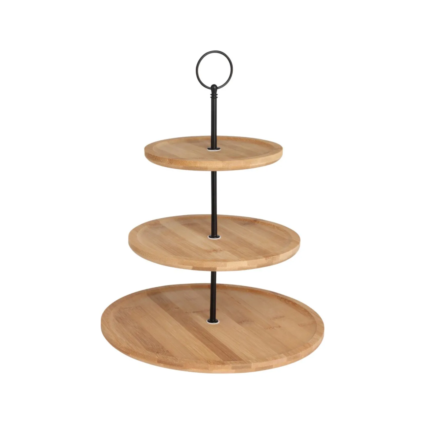 Plato de presentación de 3 pisos de bambú Ø28x34cm