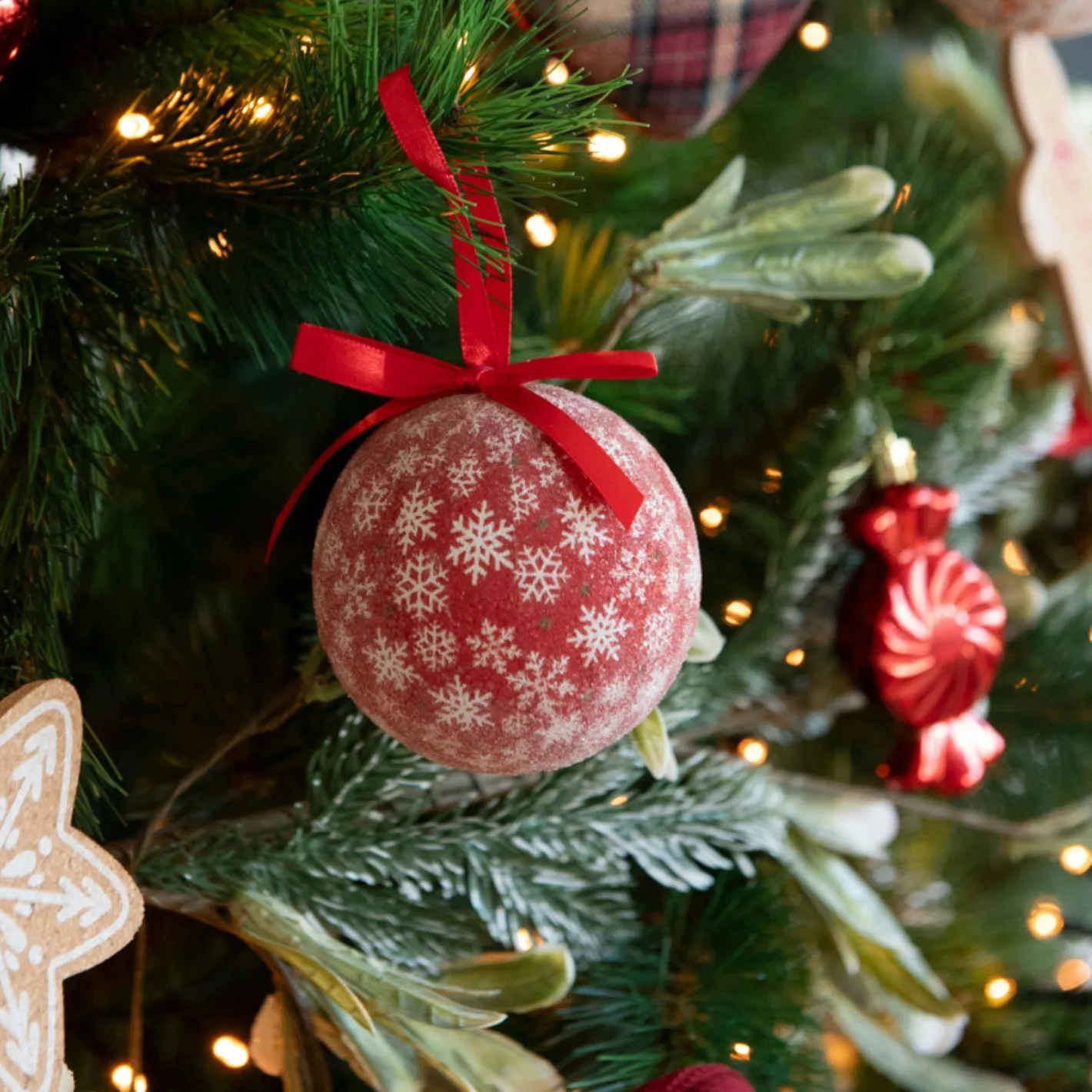 Set 7 bolas decorativas rojas copos de nieve 7,5cm^Casa Viva New