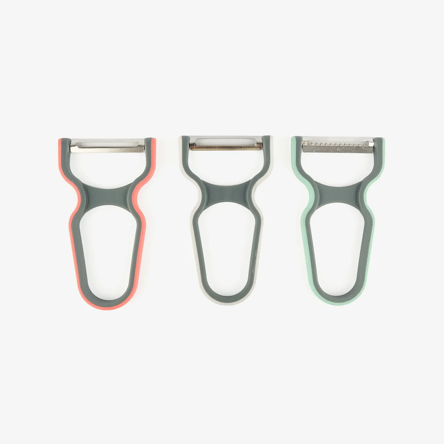 Set de 3 peladores de acero inoxidable y plástico 12cm