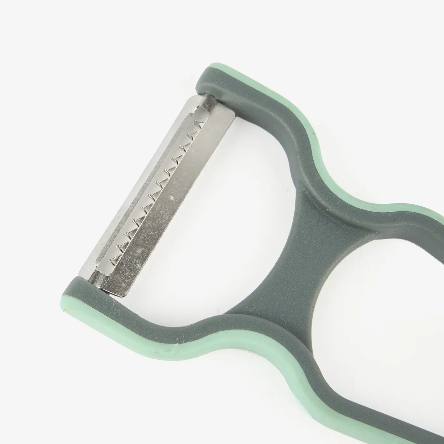 - Material: Cuchillas de acero inoxidable que garantizan un pelado suave y preciso, mientras que el mango de plástico asegura un agarre cómodo.