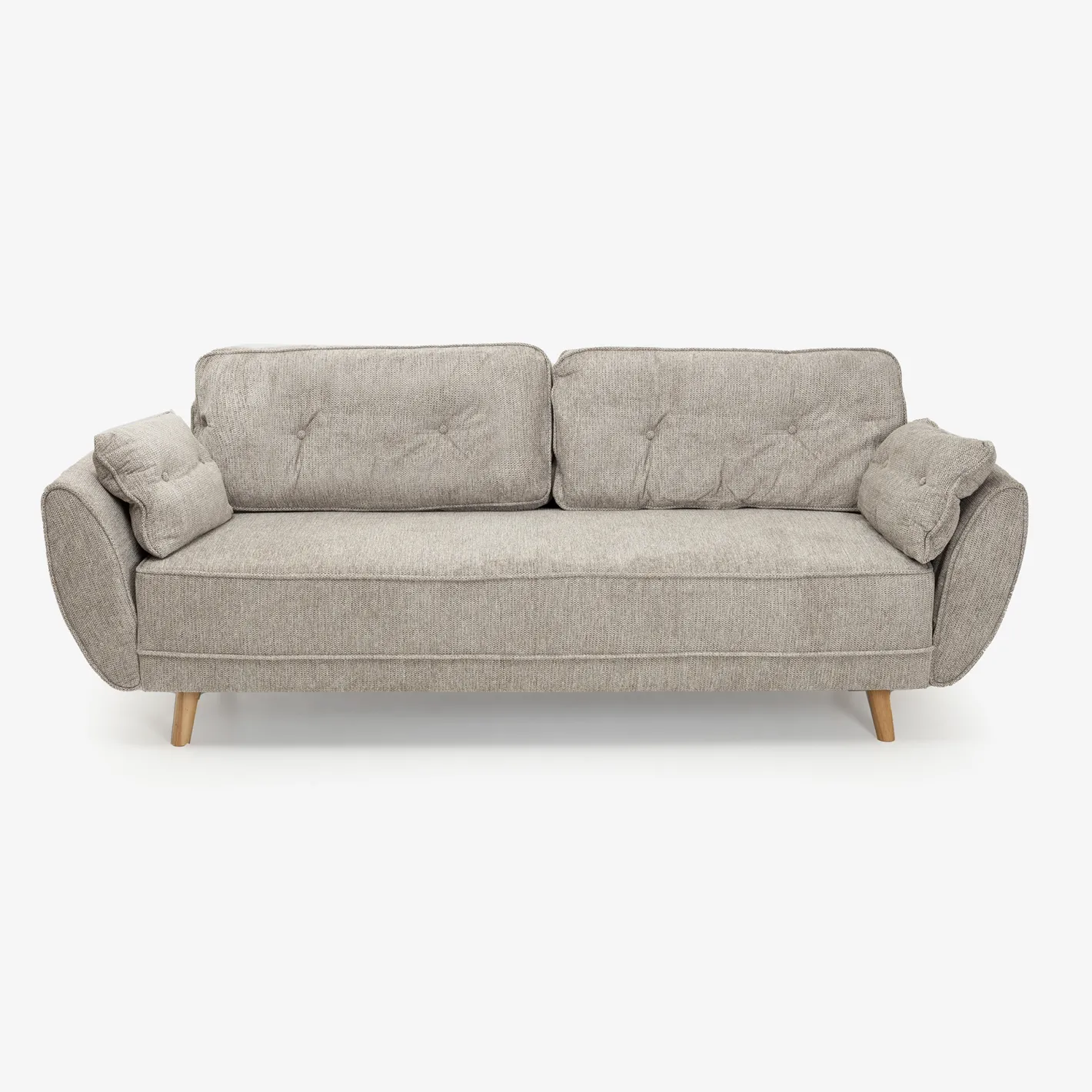 Disfruta del máximo confort y funcionalidad con el sofá cama de 3 plazas Fules en un elegante tono gris.